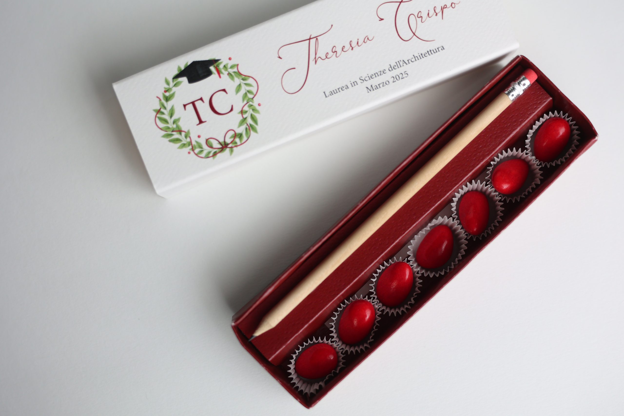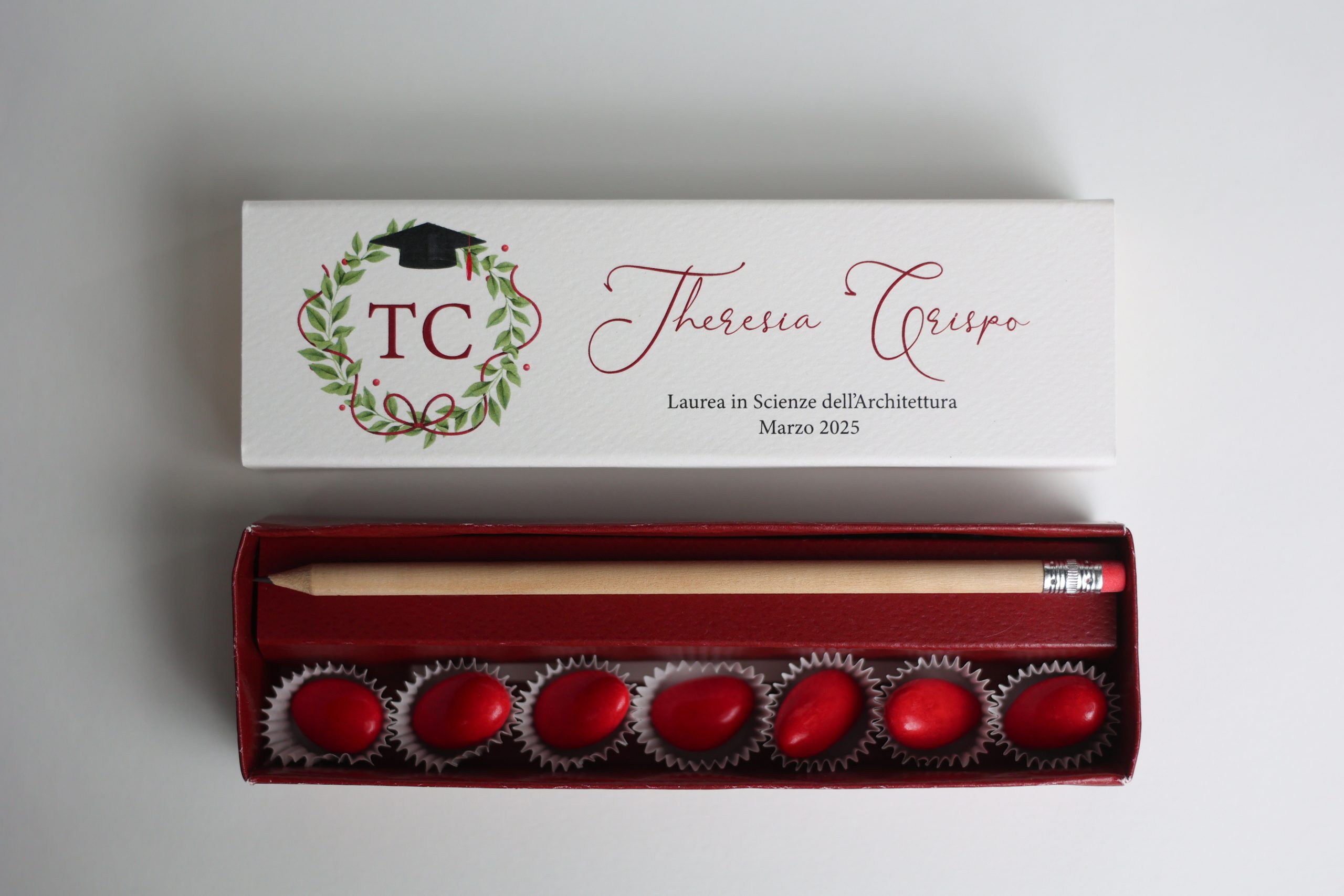 Confezione composta dal cofanetto personalizzato , in carta di alta qualità italiana.