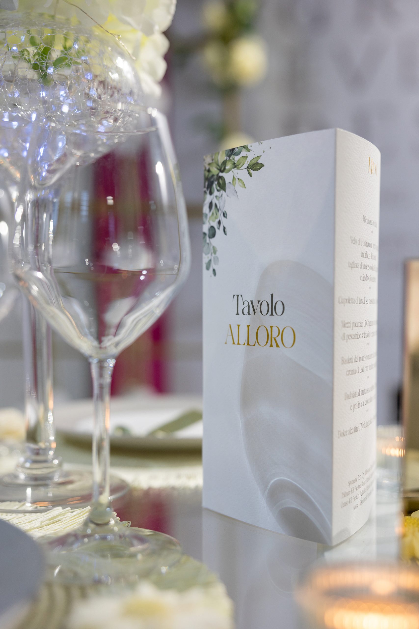 Suddiviso in tre facciate dove poter scrivere: Nome tavolo, Menù e un ringraziamento.