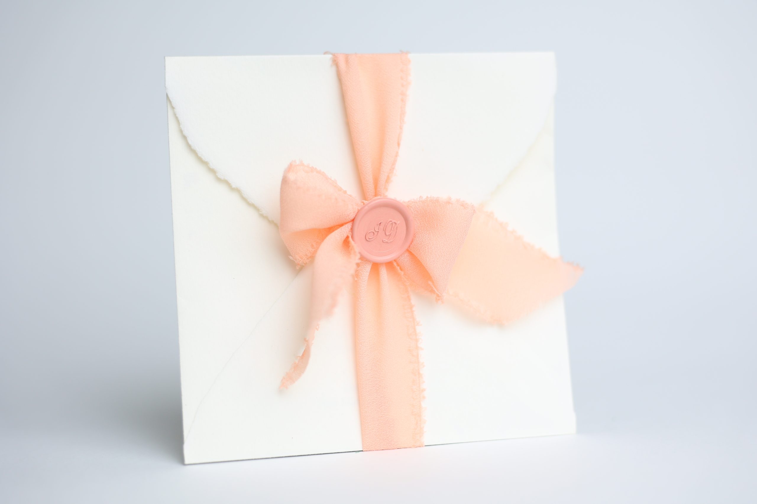 F.to 16×16 cm con chiusura in ceralacca e nastro chiffon seta sfrangiato.