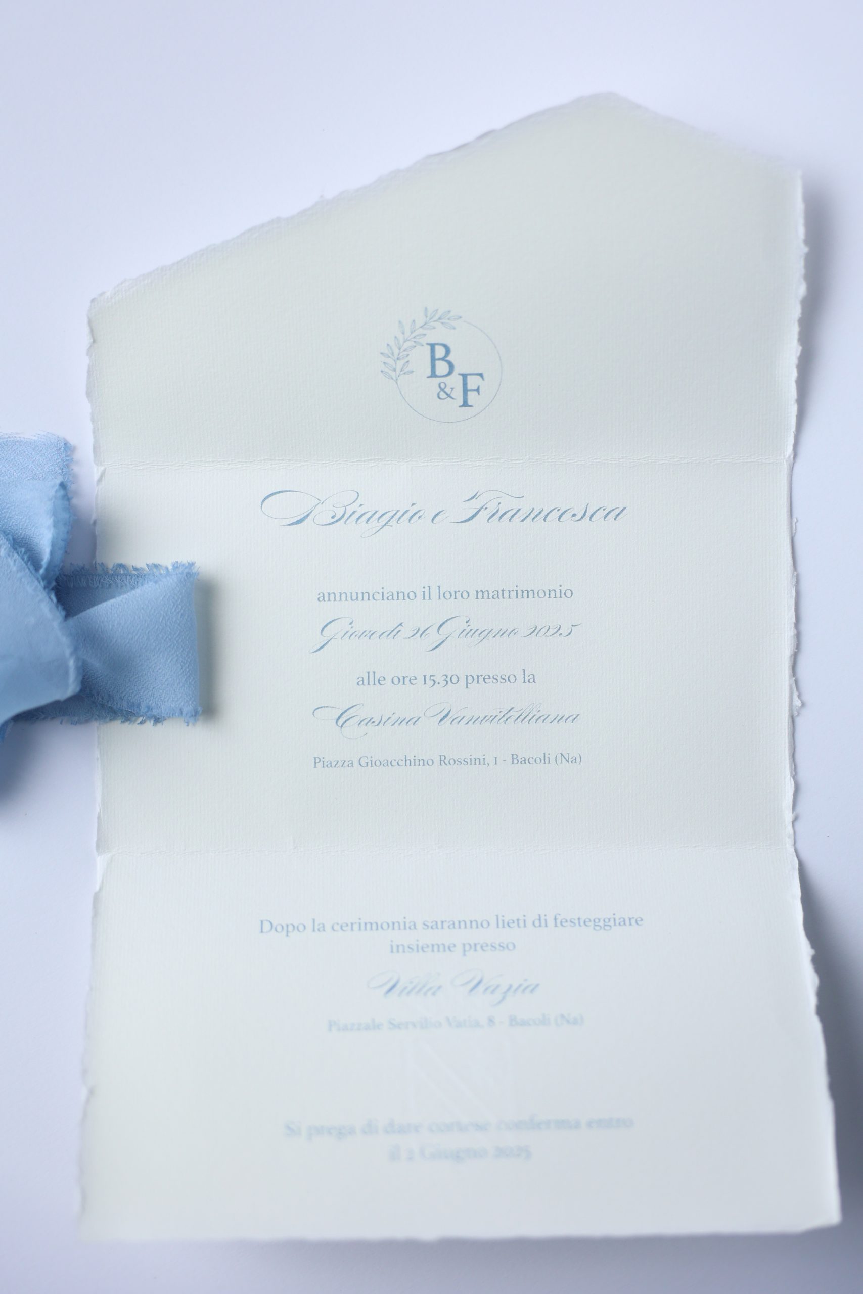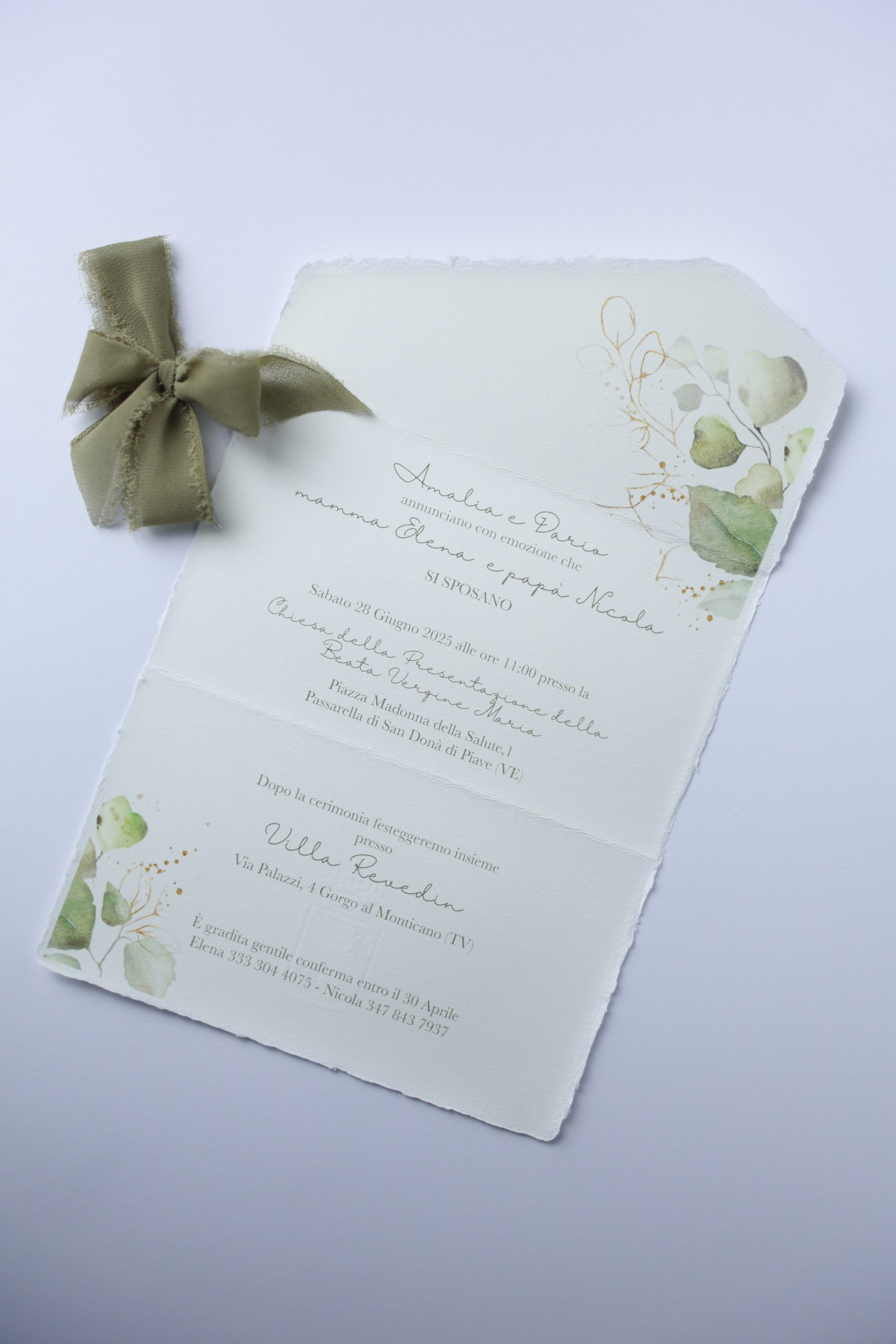 Partecipazione realizzata in carta d’Amalfi LR