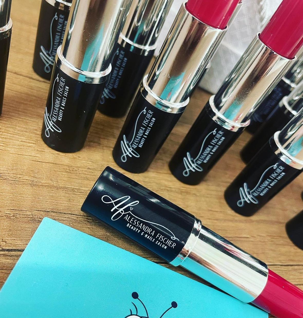 Penna a sfera in plastica a forma di rossetto colore nero e rosso
