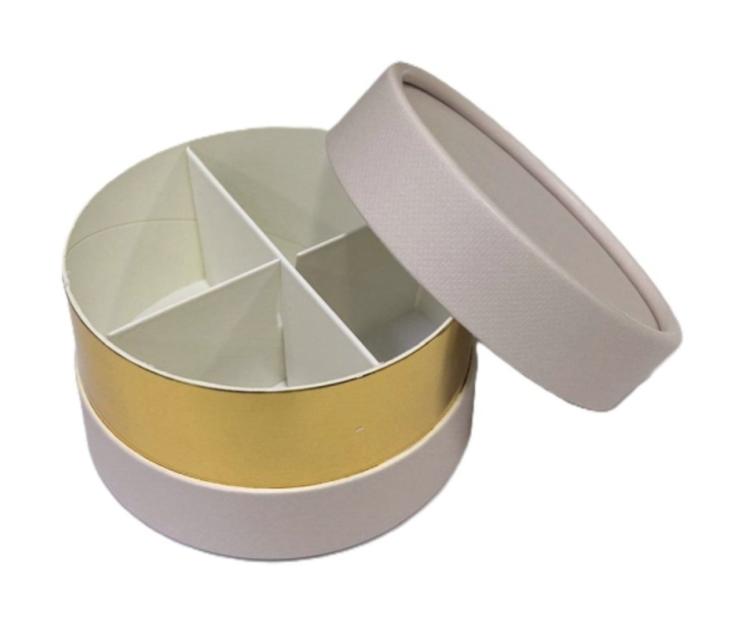 La scatola Horizon si distingue per il suo design contemporaneo a due tonalità: un delicato rivestimento del colore da te scelto che incontra una raffinata fascia centrale dorata. La sua forma cilindrica perfetta non è solo un contenitore, ma un vero e proprio oggetto.