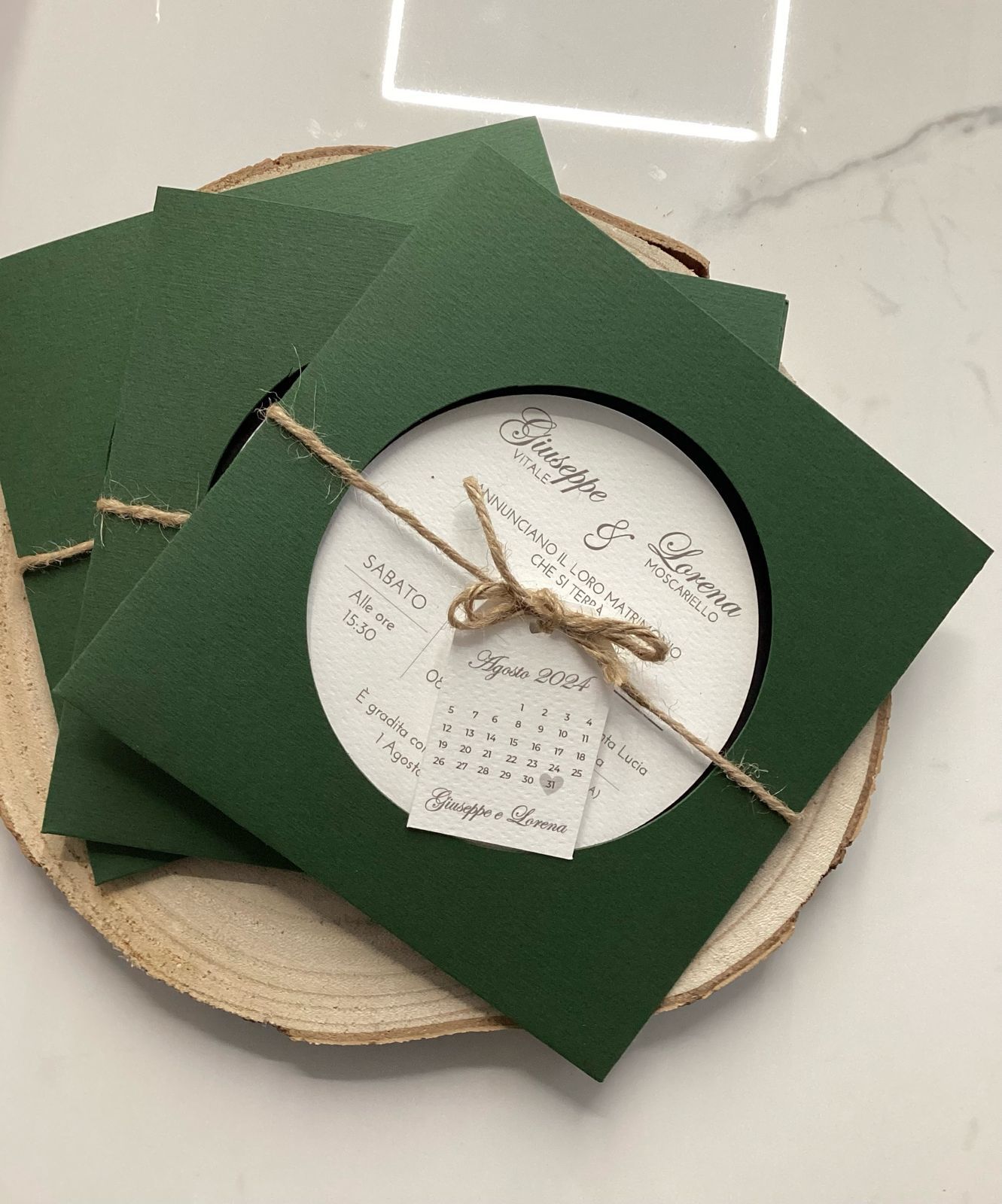 Busta fustellata: realizzata con carta Fabriano Murillo Verde 250gr