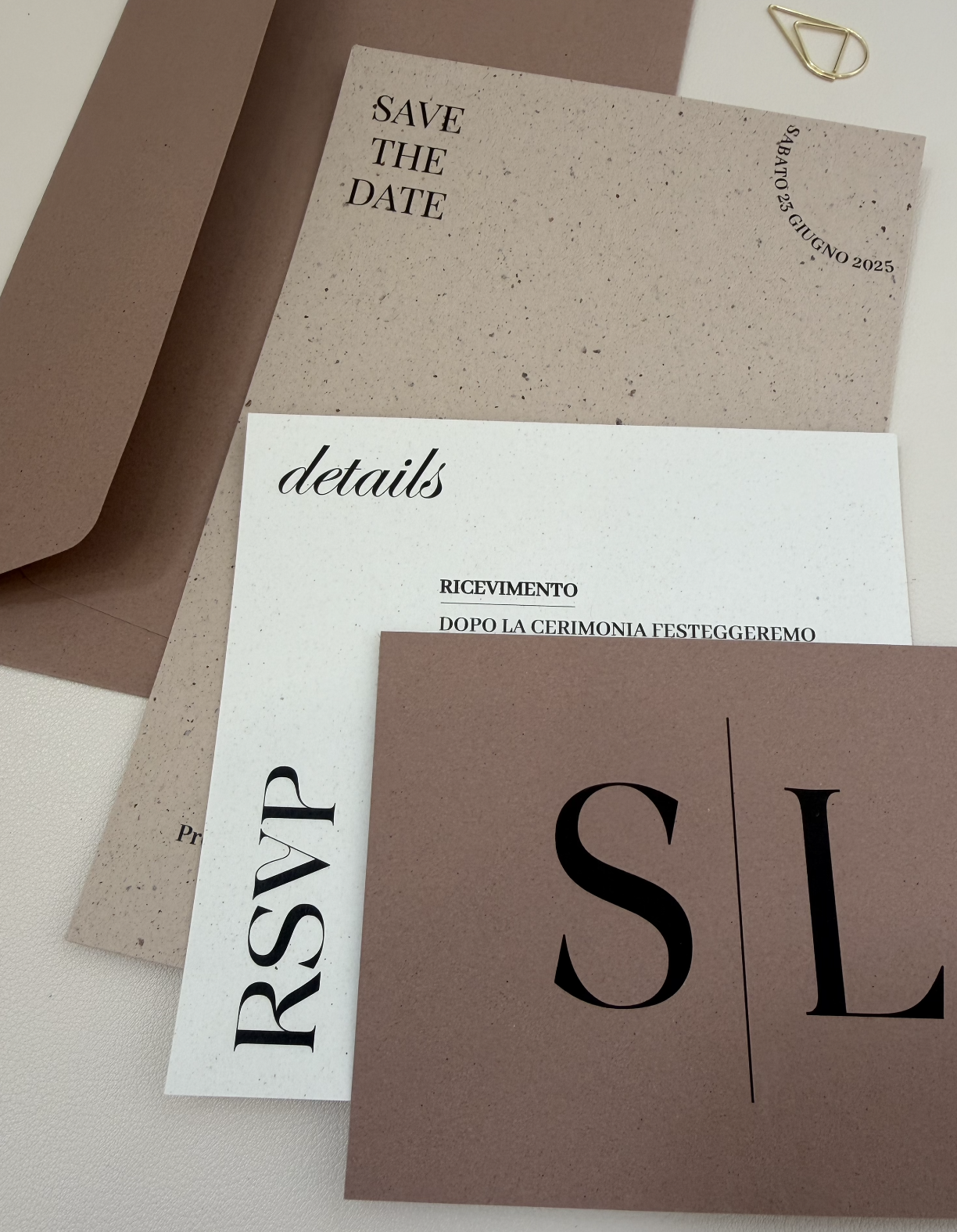 Celebrare il tuo amore con un invito che parla di eleganza sobria e naturalezza.