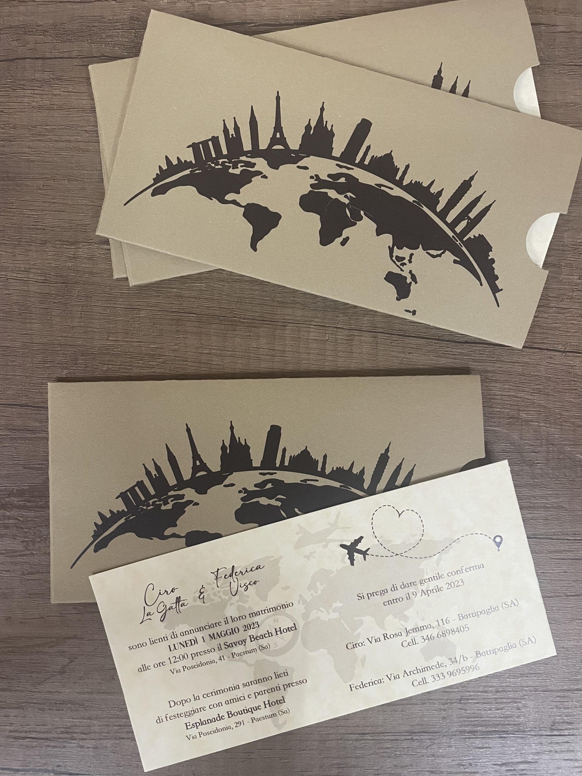 Il modello Travel è caratterizzato da una bellissima busta portafoglio realizzata in carta kraft con stampa